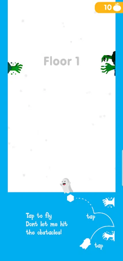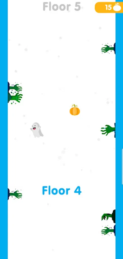 Rise with the cute ghost from floor to floor and try to pick up pumpkins to get prizes.