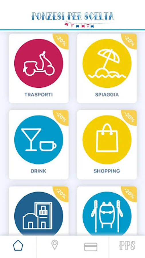 The App Ponzesi For Choice is ideal for the traveler who wants to live like a real island Ponza. By downloading it you can buy the Card Discounts Ponzesi For Choice and have all contracted activities at the smartphone range. The eight categories encompass the more than fifty activities affiliated with discounts ranging from 5% to 30%. With Ponzesi For Choosing your holiday in Ponza, the discovery of the archipelago Pontian is: Fun, Relaxing and Convenient!