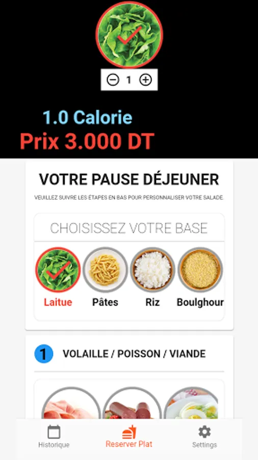 LV Salade is an application for booking salad dishes online with the possibility of choosing the combinations of ingredients that are in stock.