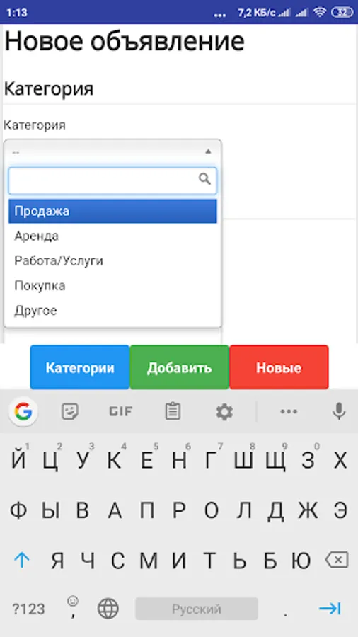 Bulletin board of Olekminsky district of the RS (Y). A simple application of a message board with categories, the function of publishing ads without registration.
