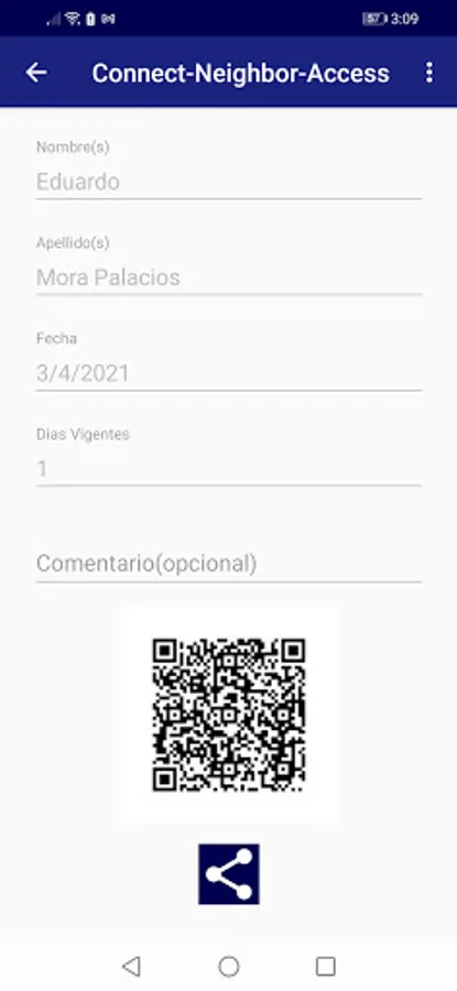 The resident will be able to generate QR codes so that the visitor shows the code in the guardhouse of the el llano circuit.