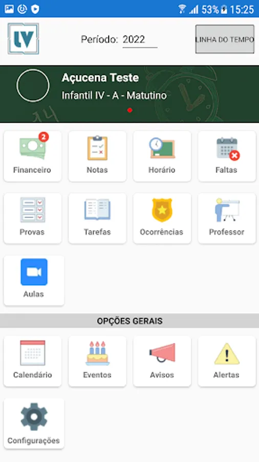 Announcements, News, Events, School Calendar, Financial with the issuance of Boletos, Notes, Frequency, Occurrences, Tasks, Content, Exclusive area for Teacher publications, in addition to a Timeline that shows upcoming events are functions found in this application.