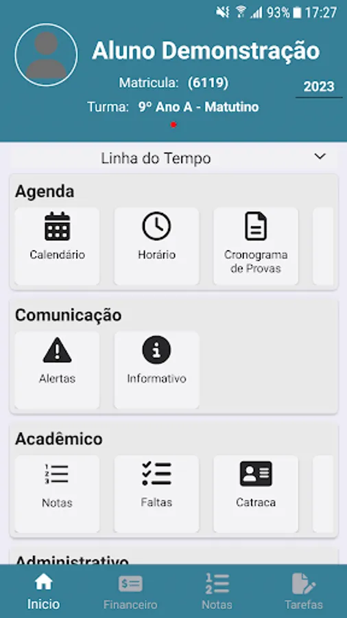 Announcements, News, Events, School Calendar, Financial with the issuance of Boletos, Notes, Frequency, Occurrences, Tasks, Content, Exclusive area for Teacher publications, in addition to a Timeline that shows upcoming events are functions found in this application.
