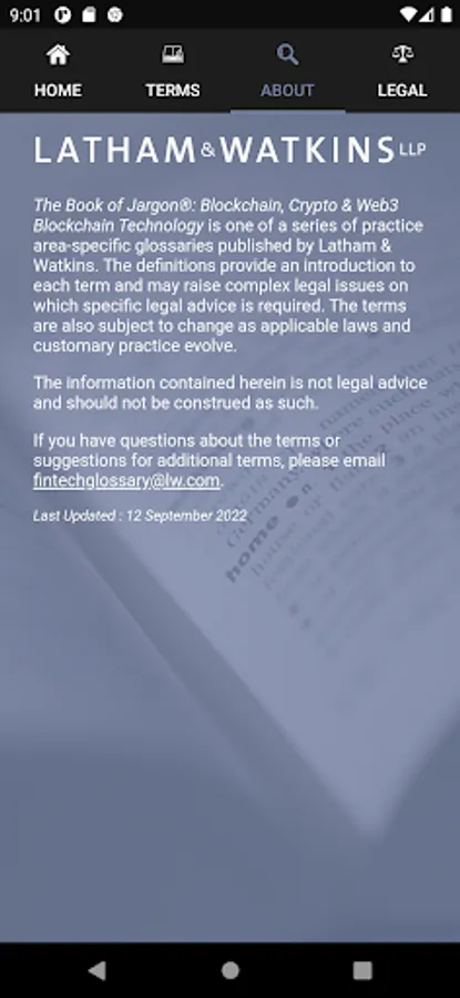 The Book of Jargon® — Blockchain, Crypto & Web3 is one in a series of practice area-specific glossaries published by Latham & Watkins. The definitions provide an introduction to each term and may raise complex legal issues on which specific legal advice is required. The terms are also subject to change as applicable laws and customary practice evolve. The information contained herein is not legal advice and should not be construed as such. If you have questions about the terms or suggestions for additional terms, please email fintechglossary@lw.com.