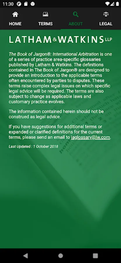 The Book of Jargon®: International Arbitration is one of a series of practice area-specific glossaries published by Latham & Watkins. The definitions contained in The Book of Jargon® are designed to provide an introduction to the applicable terms often encountered by parties to disputes. These terms raise complex legal issues on which specific legal advice will be required. The terms are also subject to change as applicable laws and customary practice evolve.