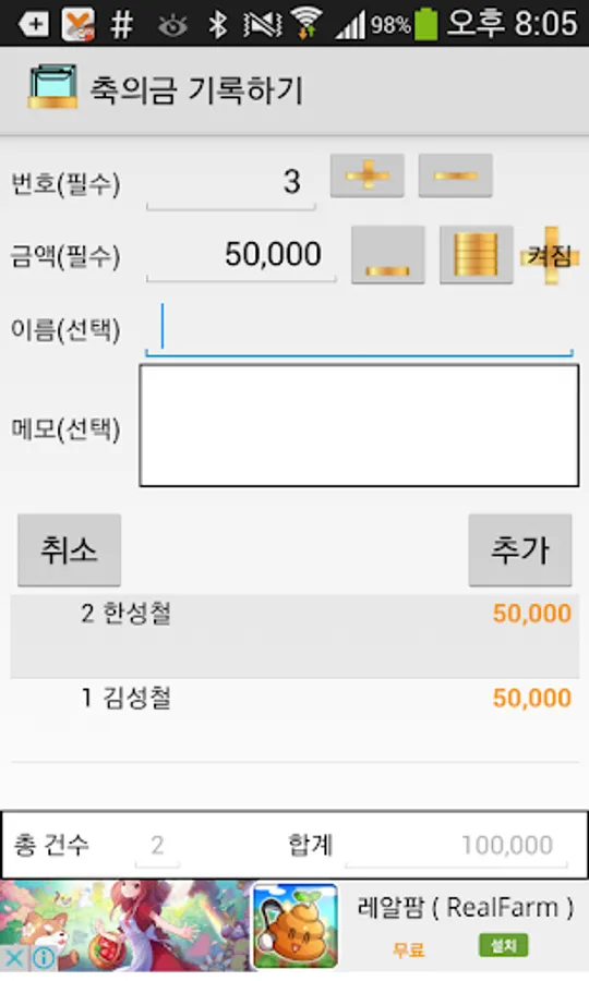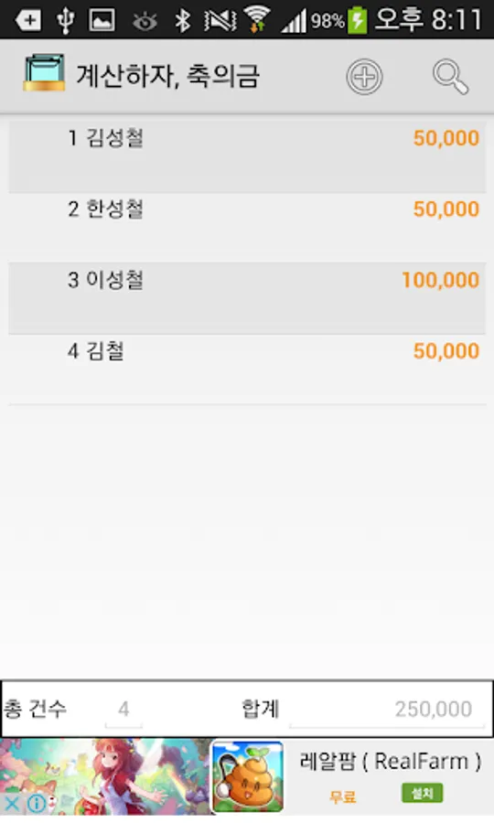 1. Congratulatory money registration and automatic summation