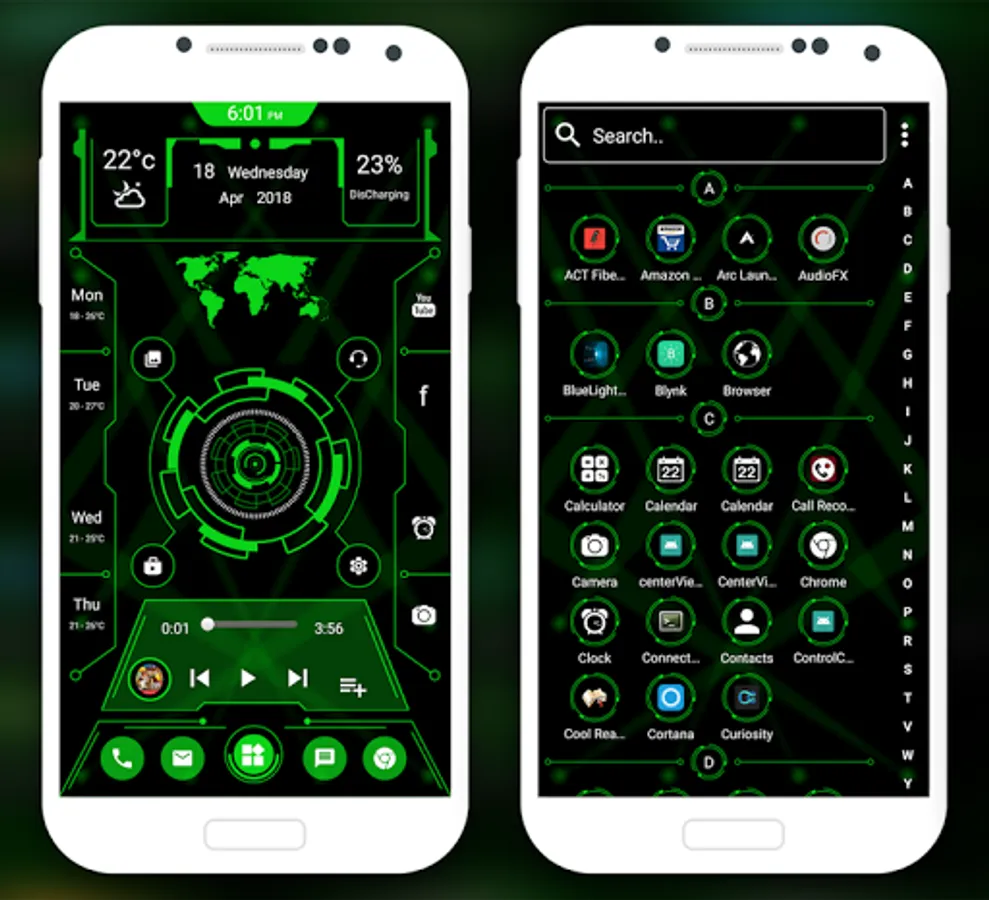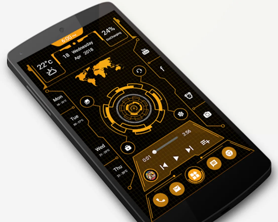 Immerse yourself in a world of color with millions of theme color options. Watch as your entire launcher transforms to exude a futuristic hitech vibe.