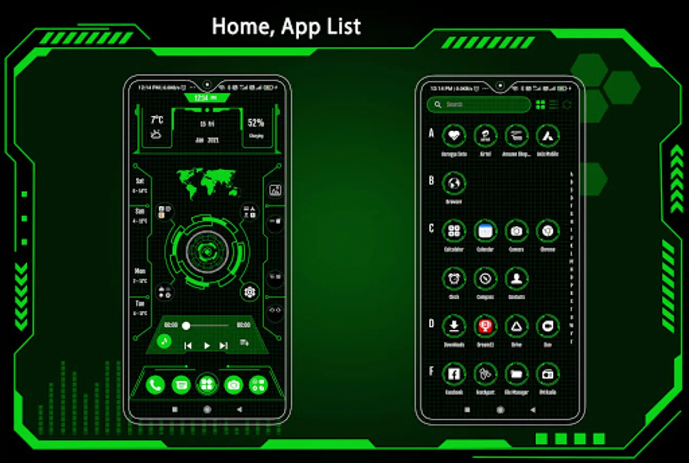 Dive into the world of dynamic hi-tech wallpapers that adapt to your chosen theme. Adjust color transparency to your preference and even use images from your personal gallery to personalize your home screen.