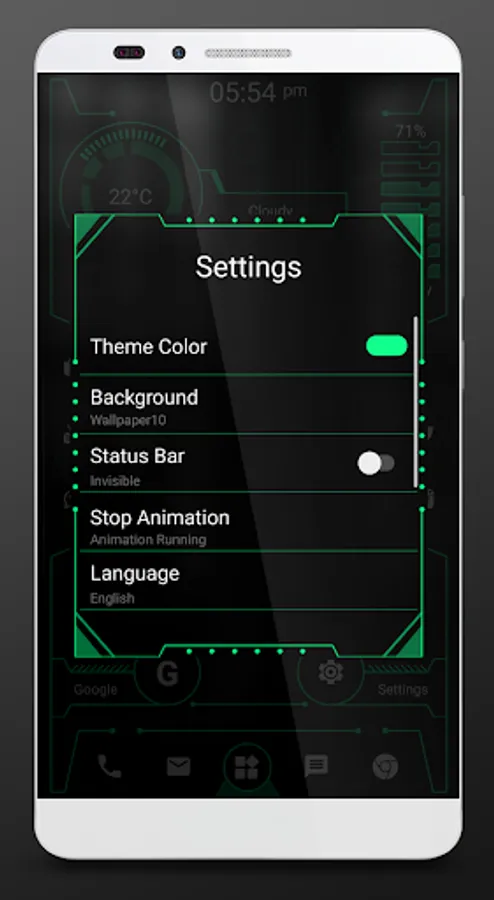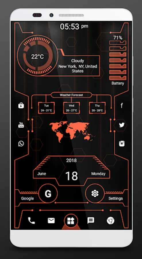 Immerse yourself in a world of color with millions of theme color options. Watch as your entire launcher transforms to exude a futuristic hitech vibe.