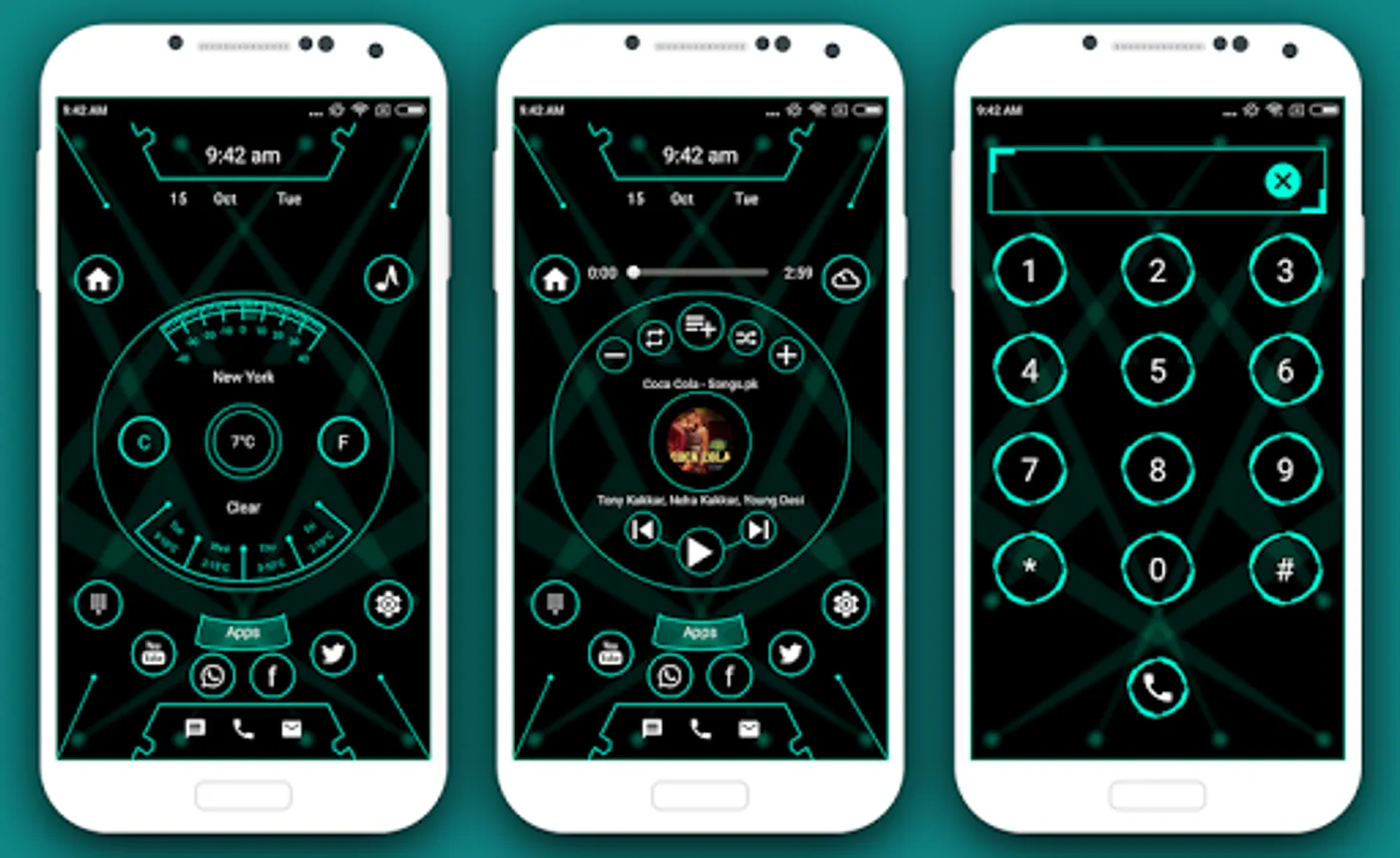 Dive into the world of dynamic hi-tech wallpapers that adapt to your chosen theme. Adjust color transparency to your preference and even use images from your personal gallery to personalize your home screen.