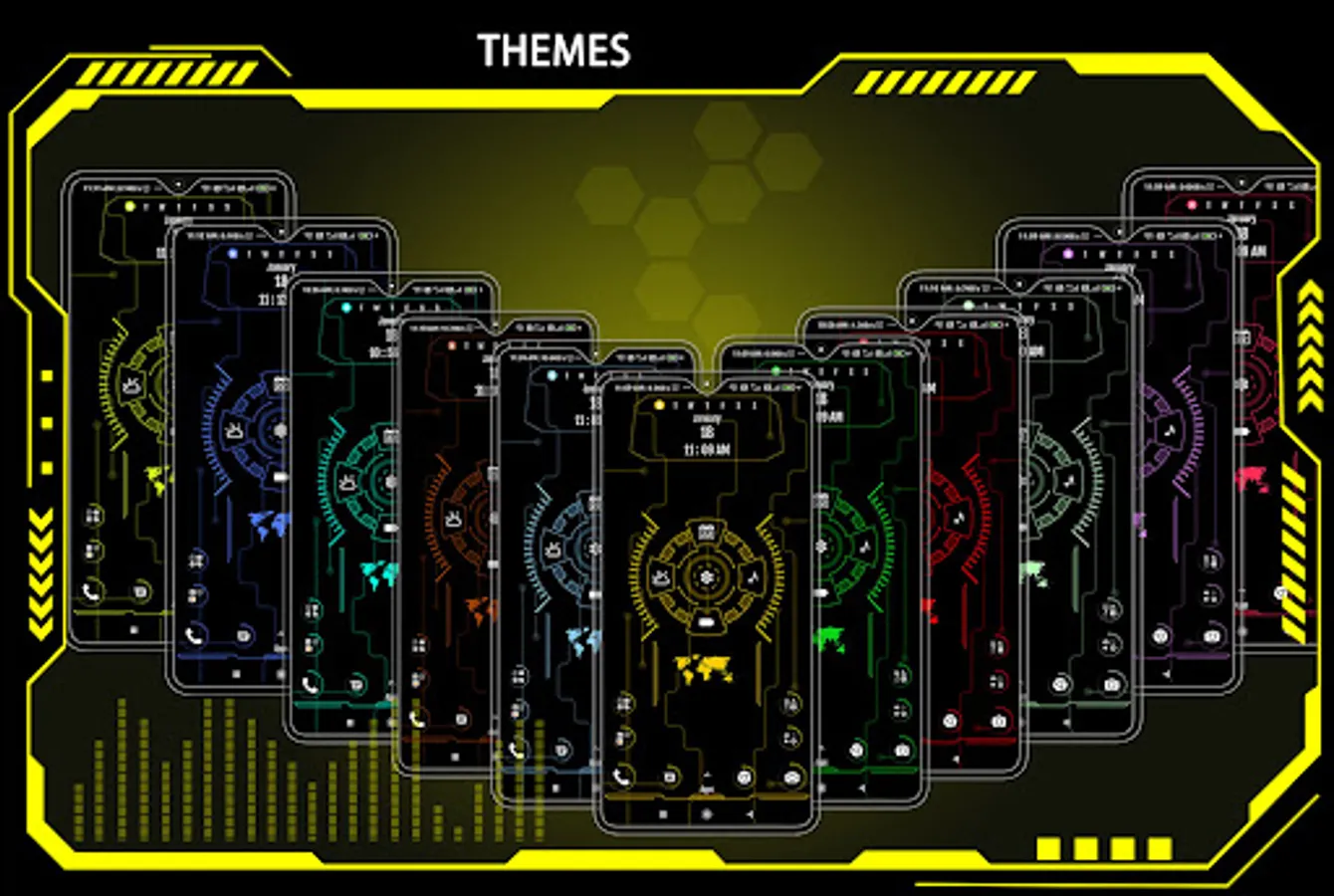 Immerse yourself in a world of color with millions of theme color options. Watch as your entire launcher transforms to exude a futuristic hitech vibe.