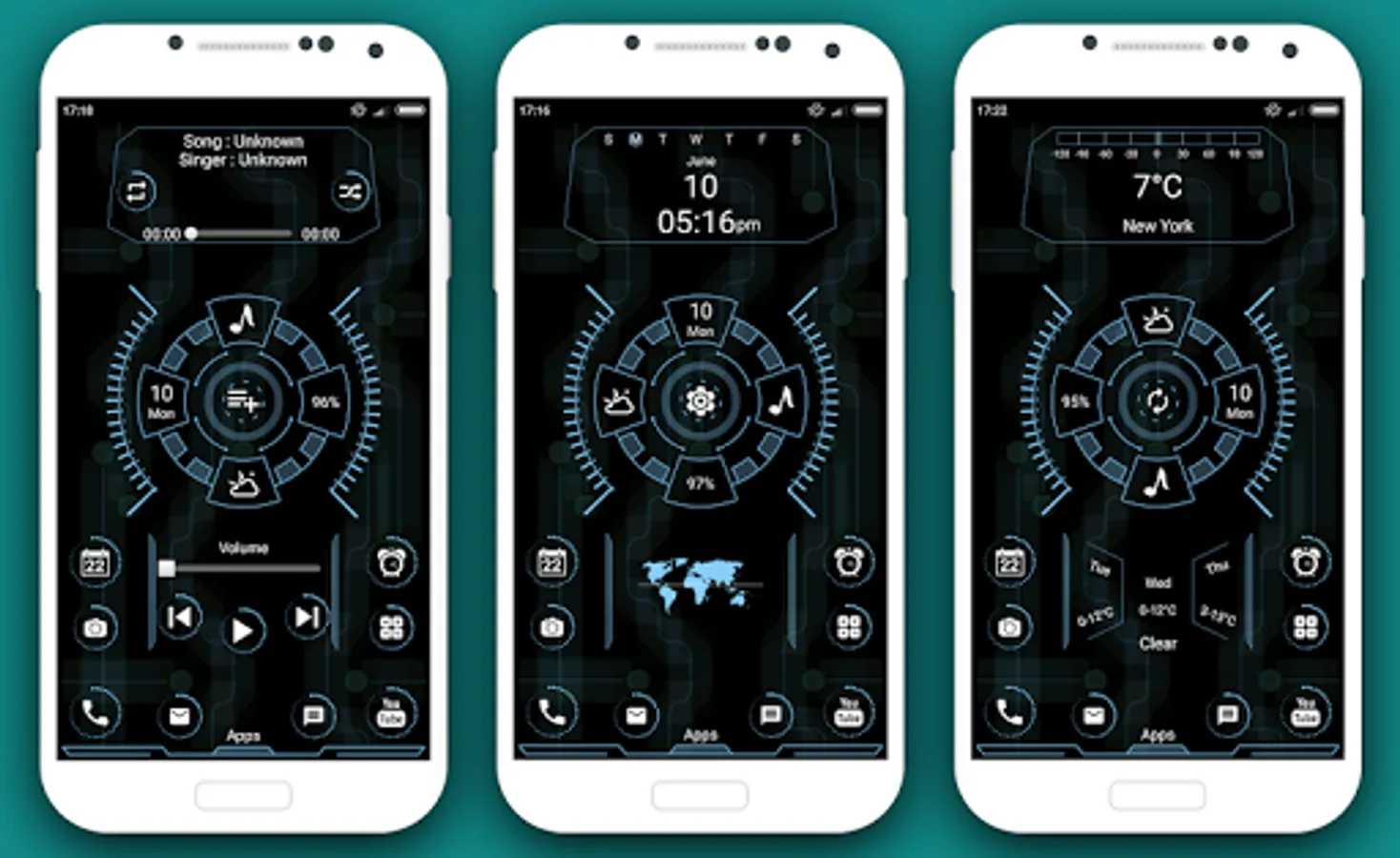 Dive into the world of dynamic hi-tech wallpapers that adapt to your chosen theme. Adjust color transparency to your preference and even use images from your personal gallery to personalize your home screen.
