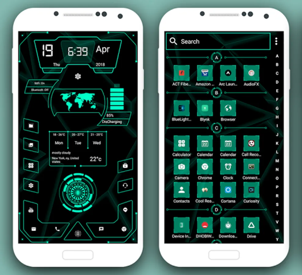 Immerse yourself in a world of color with millions of theme color options. Watch as your entire launcher transforms to exude a futuristic hitech vibe.