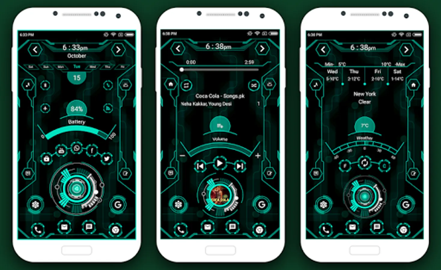 Dive into the world of dynamic hi-tech wallpapers that adapt to your chosen theme. Adjust color transparency to your preference and even use images from your personal gallery to personalize your home screen.