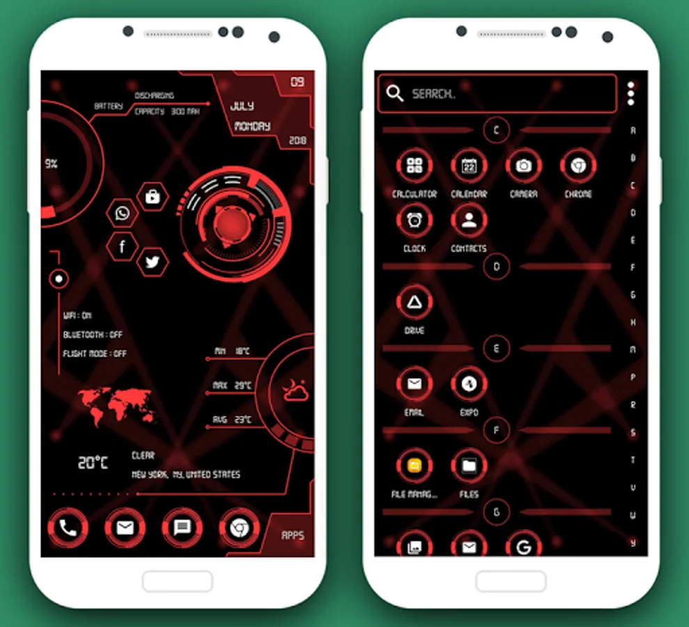 Immerse yourself in a world of color with millions of theme color options. Watch as your entire launcher transforms to exude a futuristic hitech vibe.