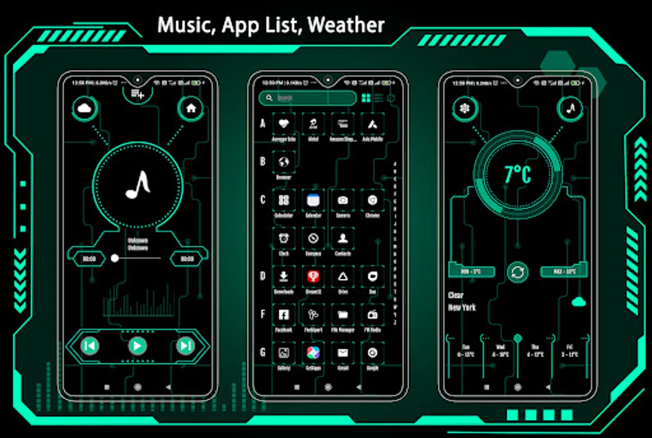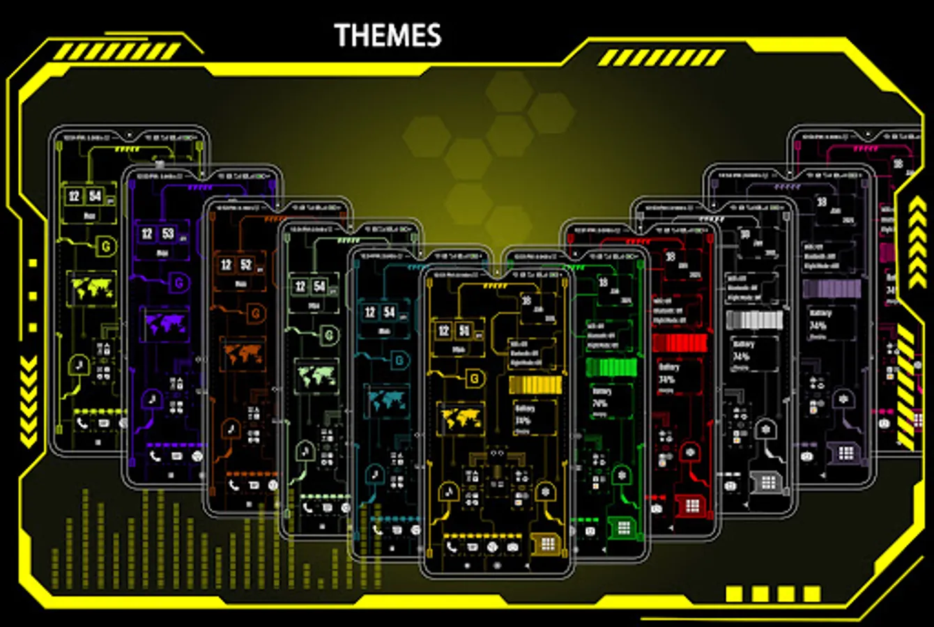 Dive into the world of dynamic hi-tech wallpapers that adapt to your chosen theme. Adjust color transparency to your preference and even use images from your personal gallery to personalize your home screen.