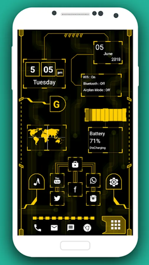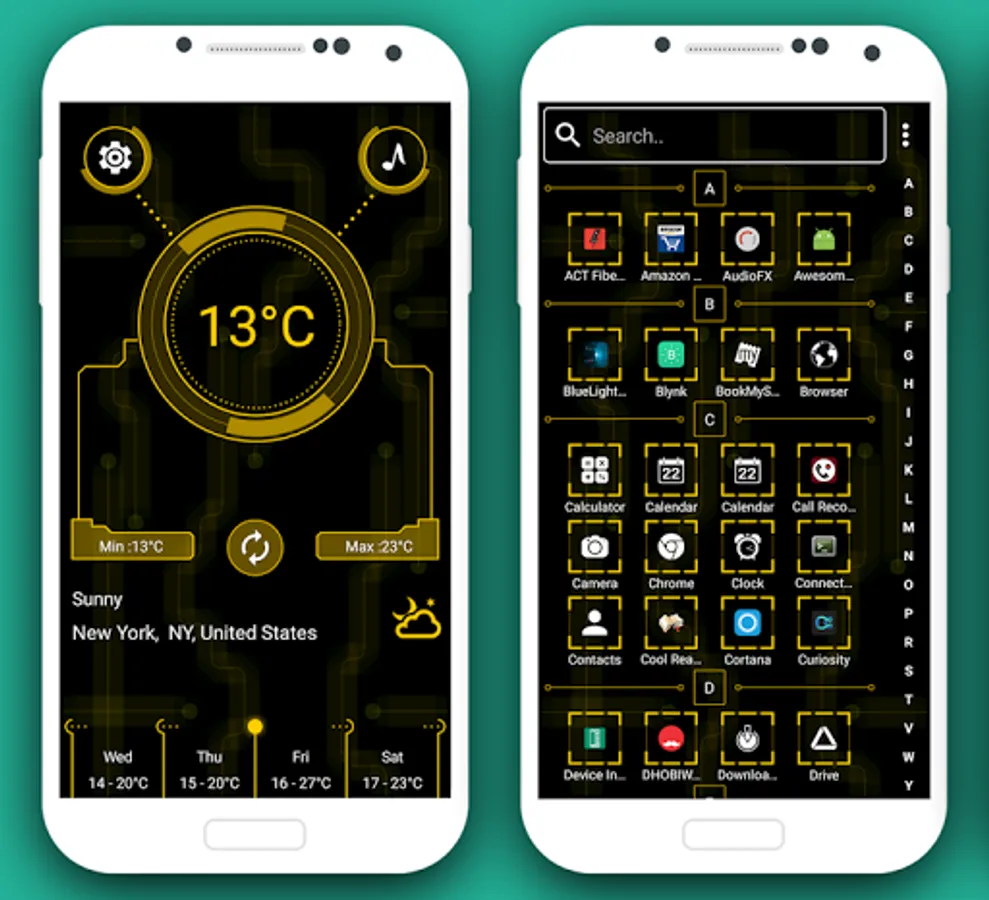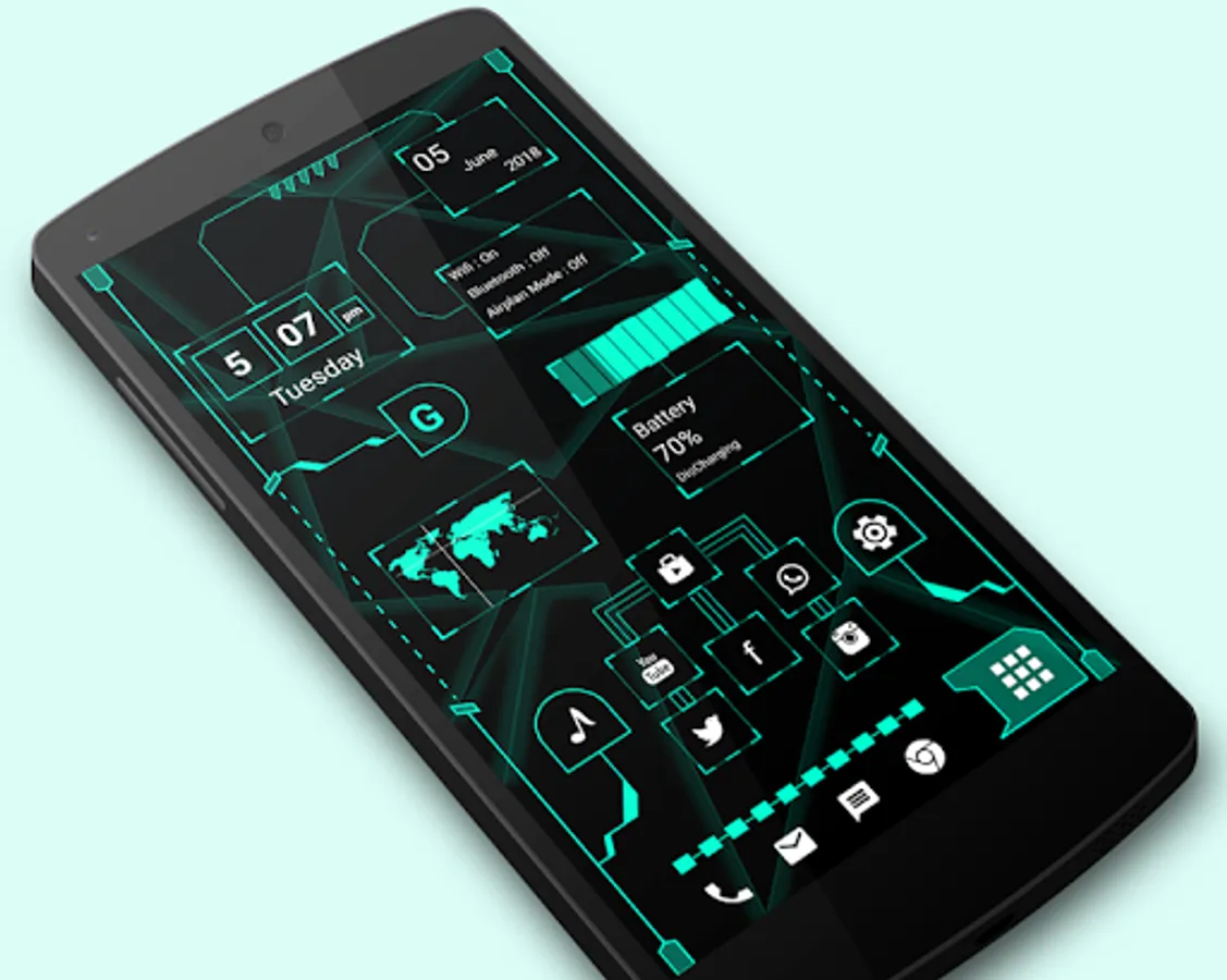 Immerse yourself in a world of color with millions of theme color options. Watch as your entire launcher transforms to exude a futuristic hitech vibe.