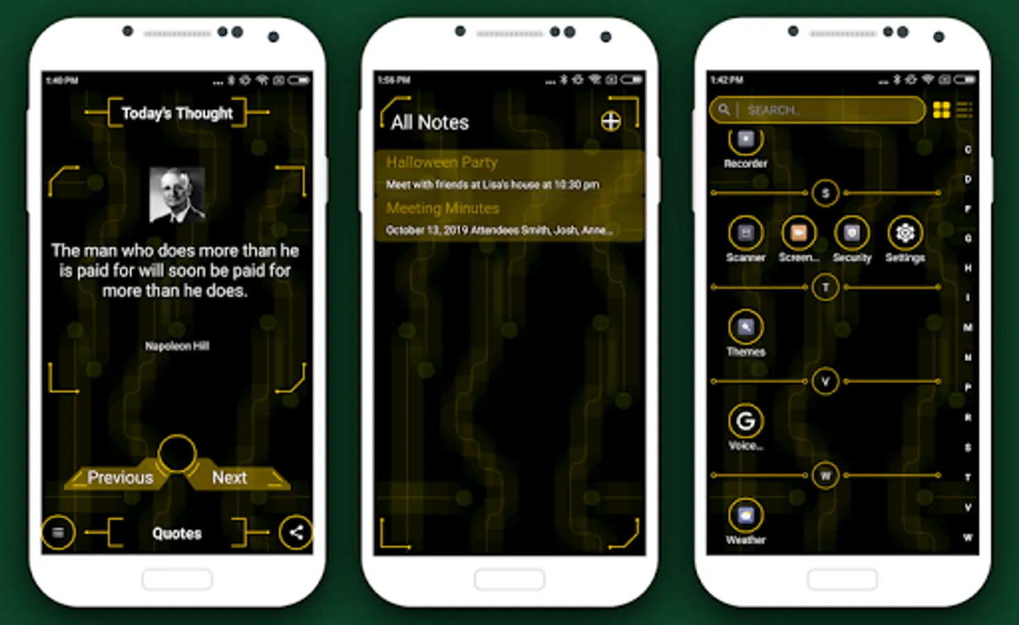Immerse yourself in a world of color with millions of theme color options. Watch as your entire launcher transforms to exude a futuristic hitech vibe.