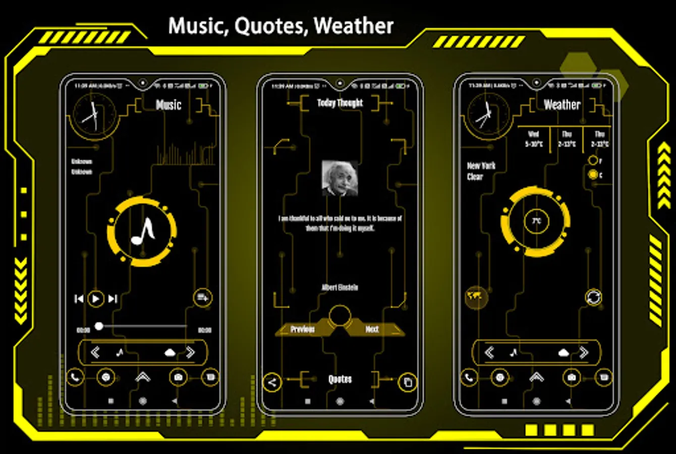 Dive into the world of dynamic hi-tech wallpapers that adapt to your chosen theme. Adjust color transparency to your preference and even use images from your personal gallery to personalize your home screen.