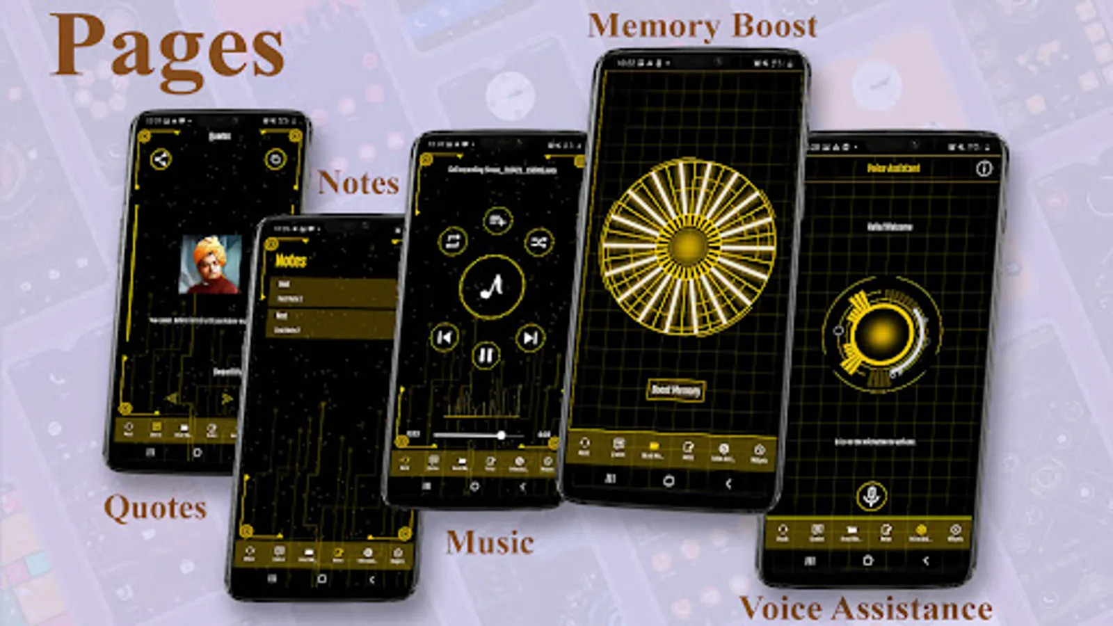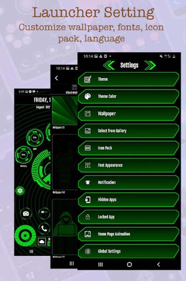 In this themer launcher you will get AppLock, HideApp, Hitech Wallpaper, Simple vetor style wallpaper, Folder feature, Motivational Quotes, Notes, Voice assistance, Music Player and much more.