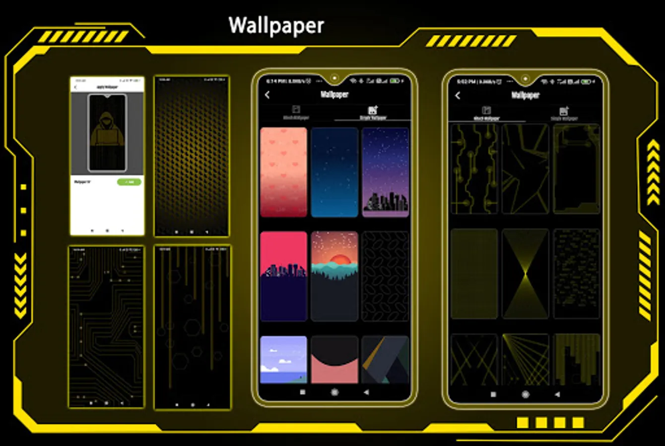 Hi-tech wallpaper & Simple wallpaper added, which can change its color with your theme color. You can also apply wallpaper from your own gallery.