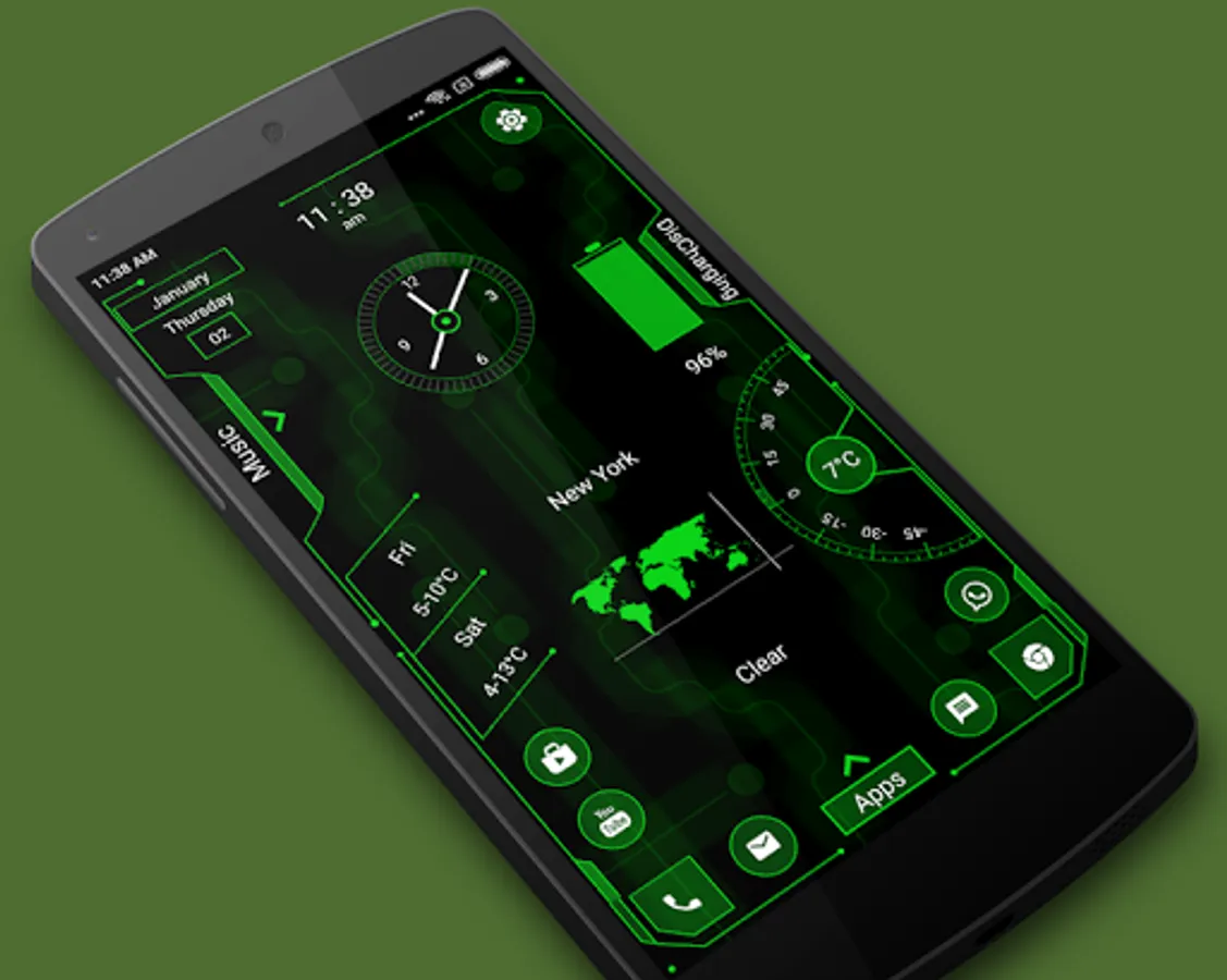 Immerse yourself in a world of color with millions of theme color options. Watch as your entire launcher transforms to exude a futuristic hitech vibe.