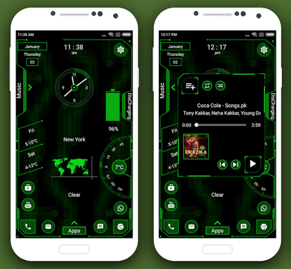 Dive into the world of dynamic hi-tech wallpapers that adapt to your chosen theme. Adjust color transparency to your preference and even use images from your personal gallery to personalize your home screen.