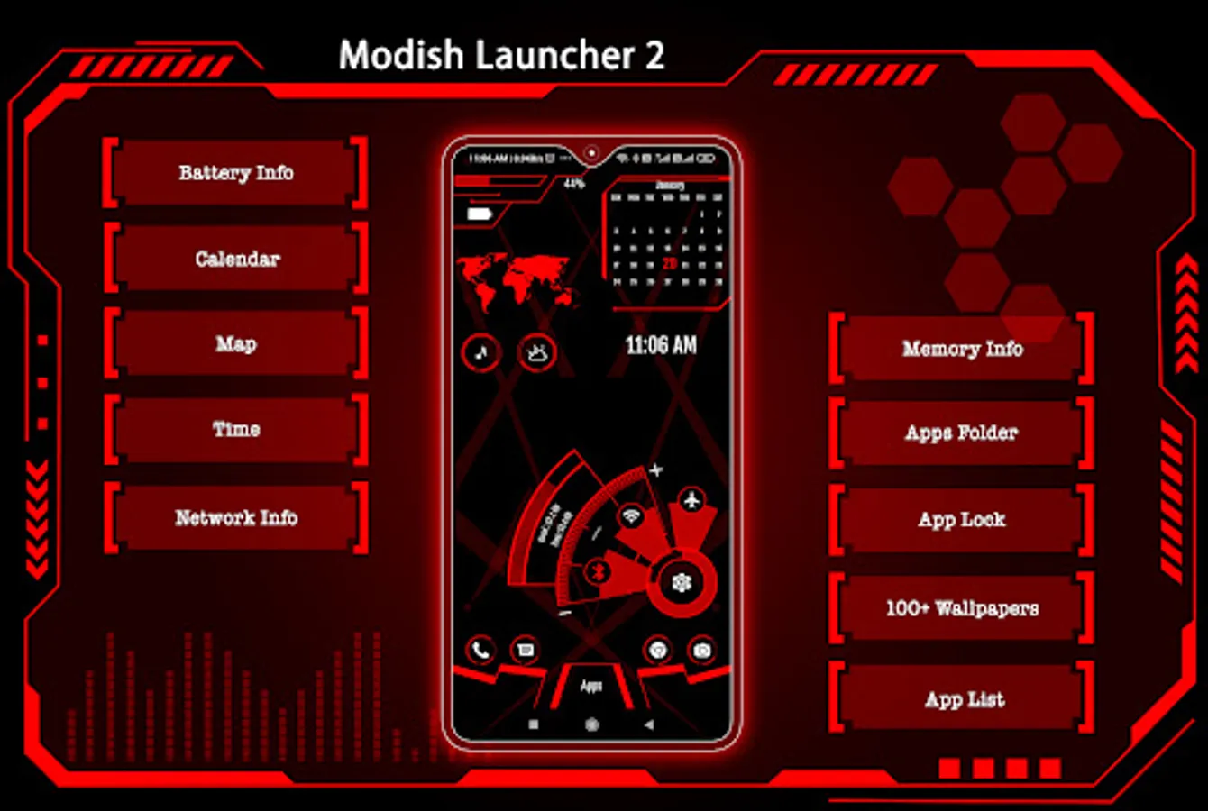 Welcome to Modish Launcher 2, your gateway to a seamless and stylish Android experience. Unlock the power of AppLock, HideApp, Hitech Wallpaper, Folders, and Themes - all in one incredible package. With its futuristic UI, customizable themes, and powerful features, Modish Launcher 2 is the perfect way to make your Android phone feel like a brand new device. This is a perfect user interface design which gives user to easy and better interactive control experience. It provides more wonderful and useful features and any color themes which enhance your phone with different styles.