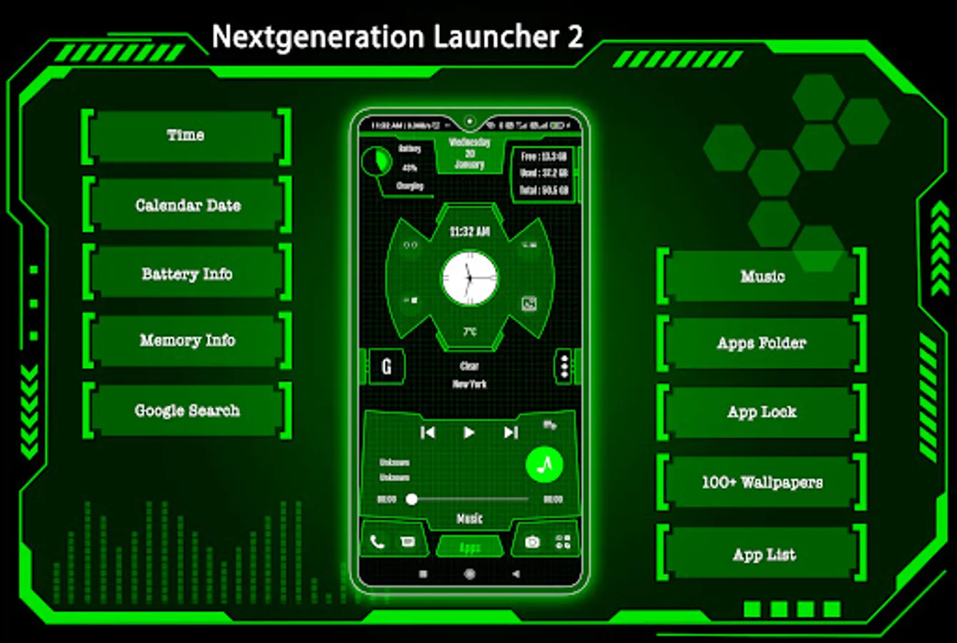 Welcome to Nextgeneration Launcher 2, your gateway to a seamless and stylish Android experience. Unlock the power of AppLock, HideApp, Hitech Wallpaper, Folders, and Themes - all in one incredible package. With its futuristic UI, customizable themes, and powerful features, Nextgeneration Launcher 2 is the perfect way to make your Android phone feel like a brand new device. This is a perfect user interface design which gives user to easy and better interactive control experience. It provides more wonderful and useful features and any color themes which enhance your phone with different styles.