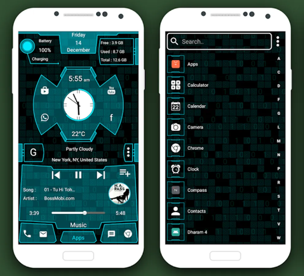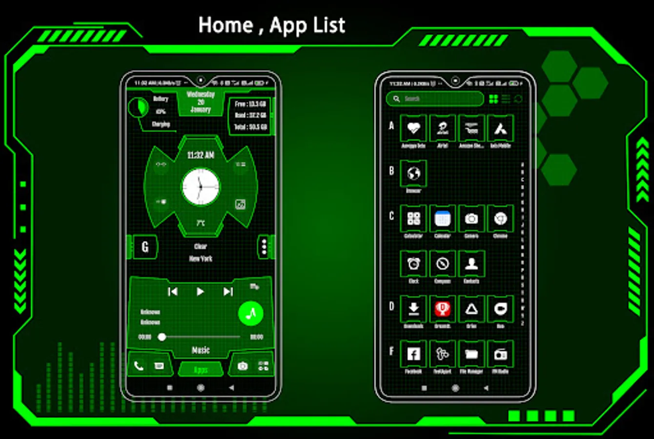 Immerse yourself in a world of color with millions of theme color options. Watch as your entire launcher transforms to exude a futuristic hitech vibe.