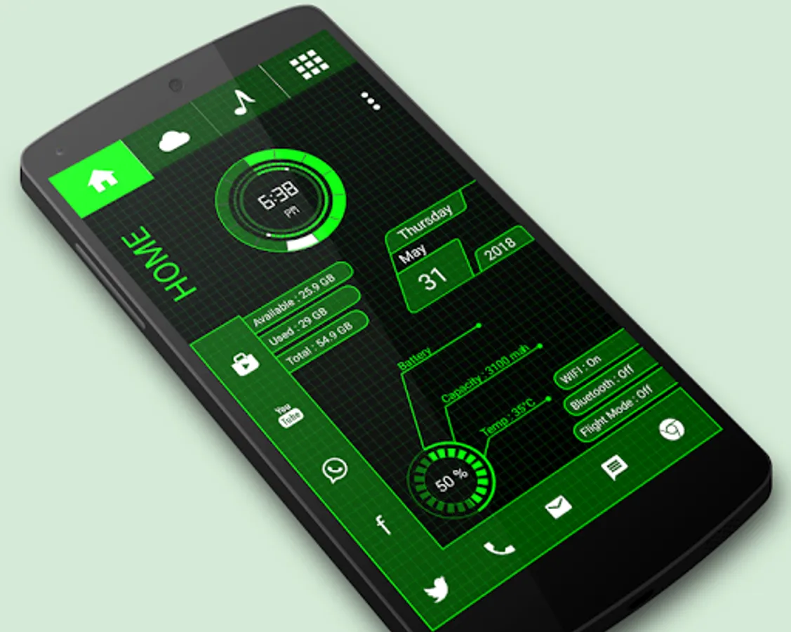 Immerse yourself in a world of color with millions of theme color options. Watch as your entire launcher transforms to exude a futuristic hitech vibe.