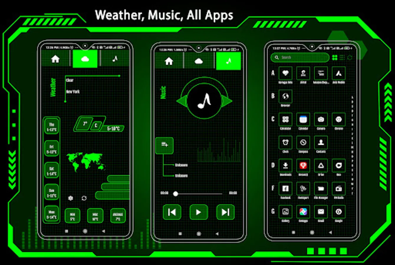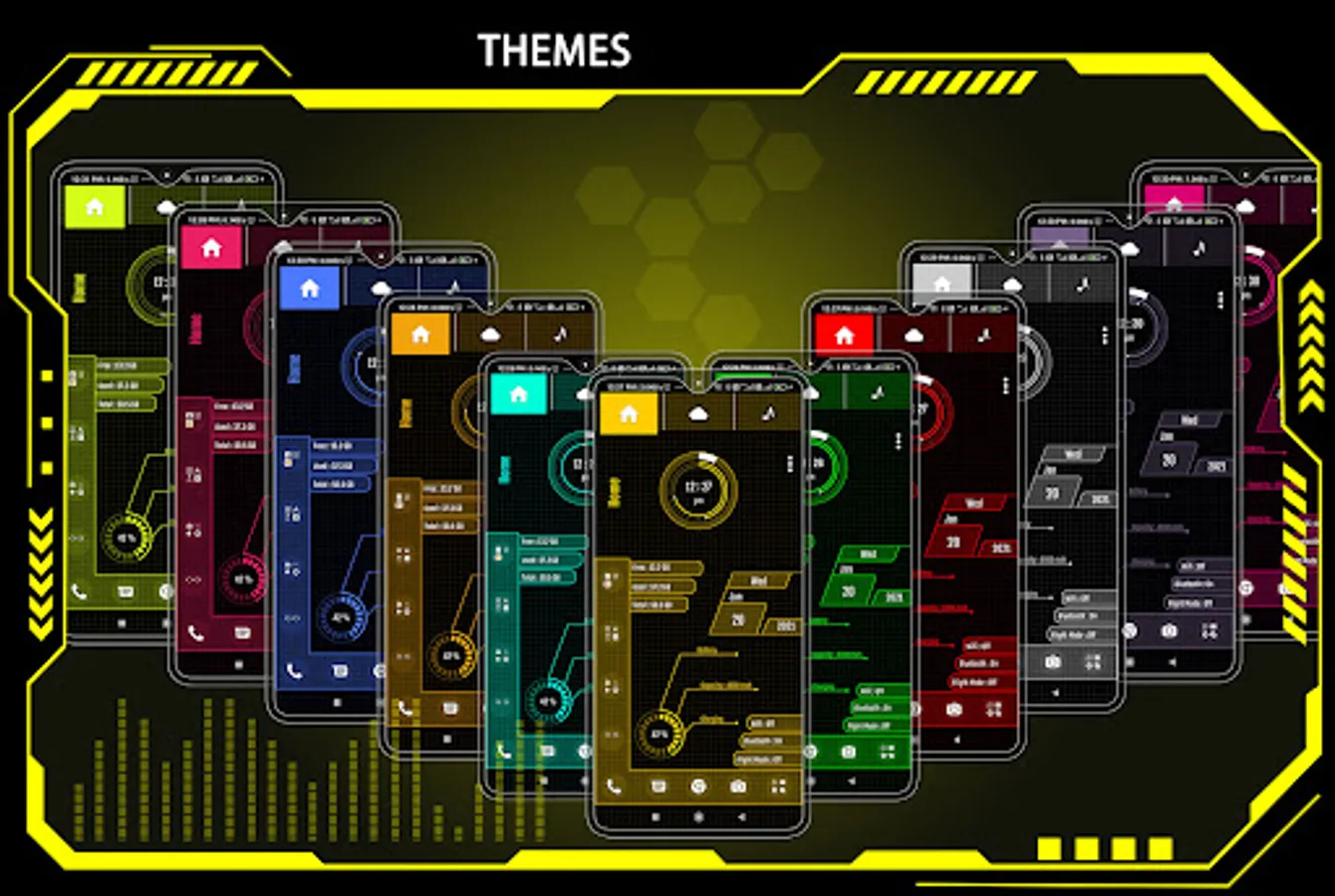 Dive into the world of dynamic hi-tech wallpapers that adapt to your chosen theme. Adjust color transparency to your preference and even use images from your personal gallery to personalize your home screen.