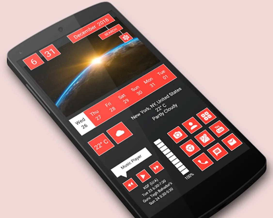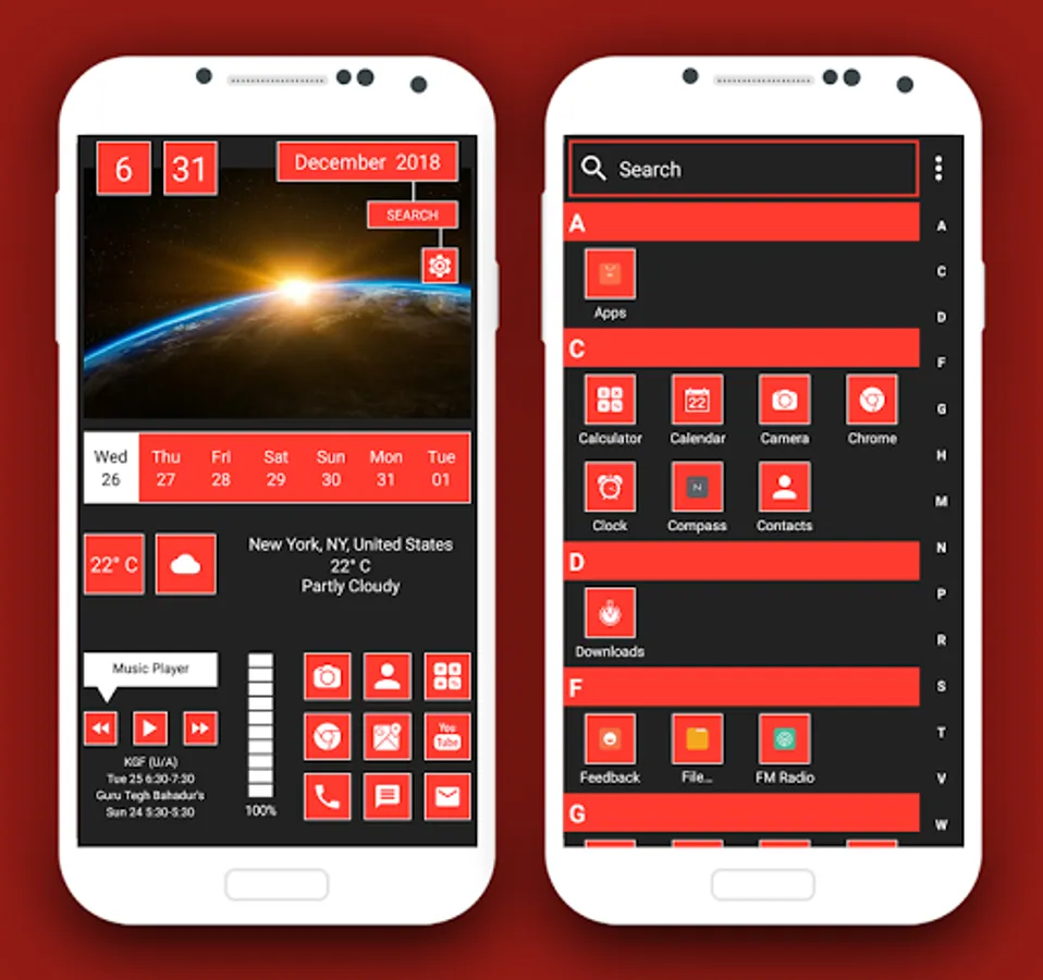 Immerse yourself in a world of color with millions of theme color options. Watch as your entire launcher transforms to exude a futuristic hitech vibe.