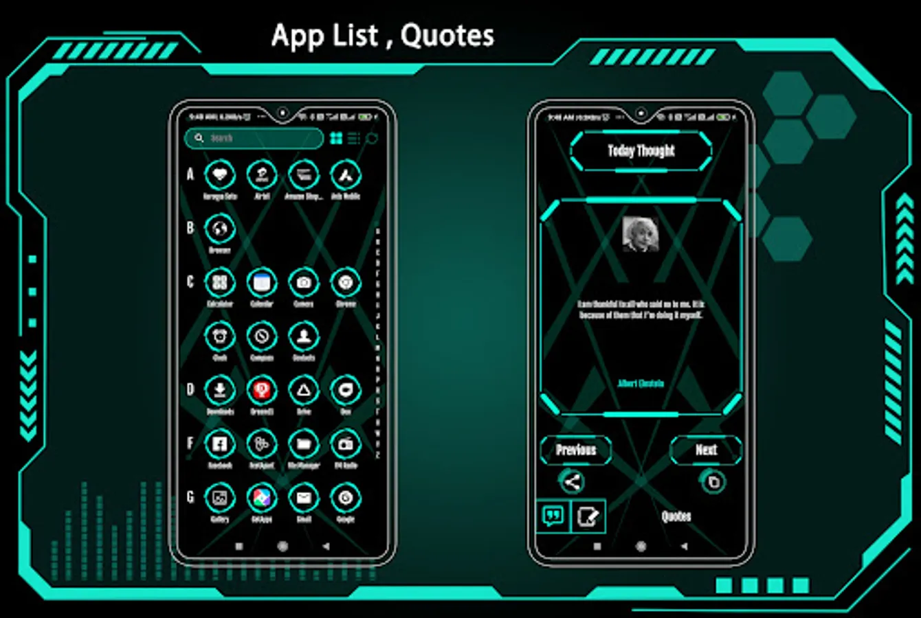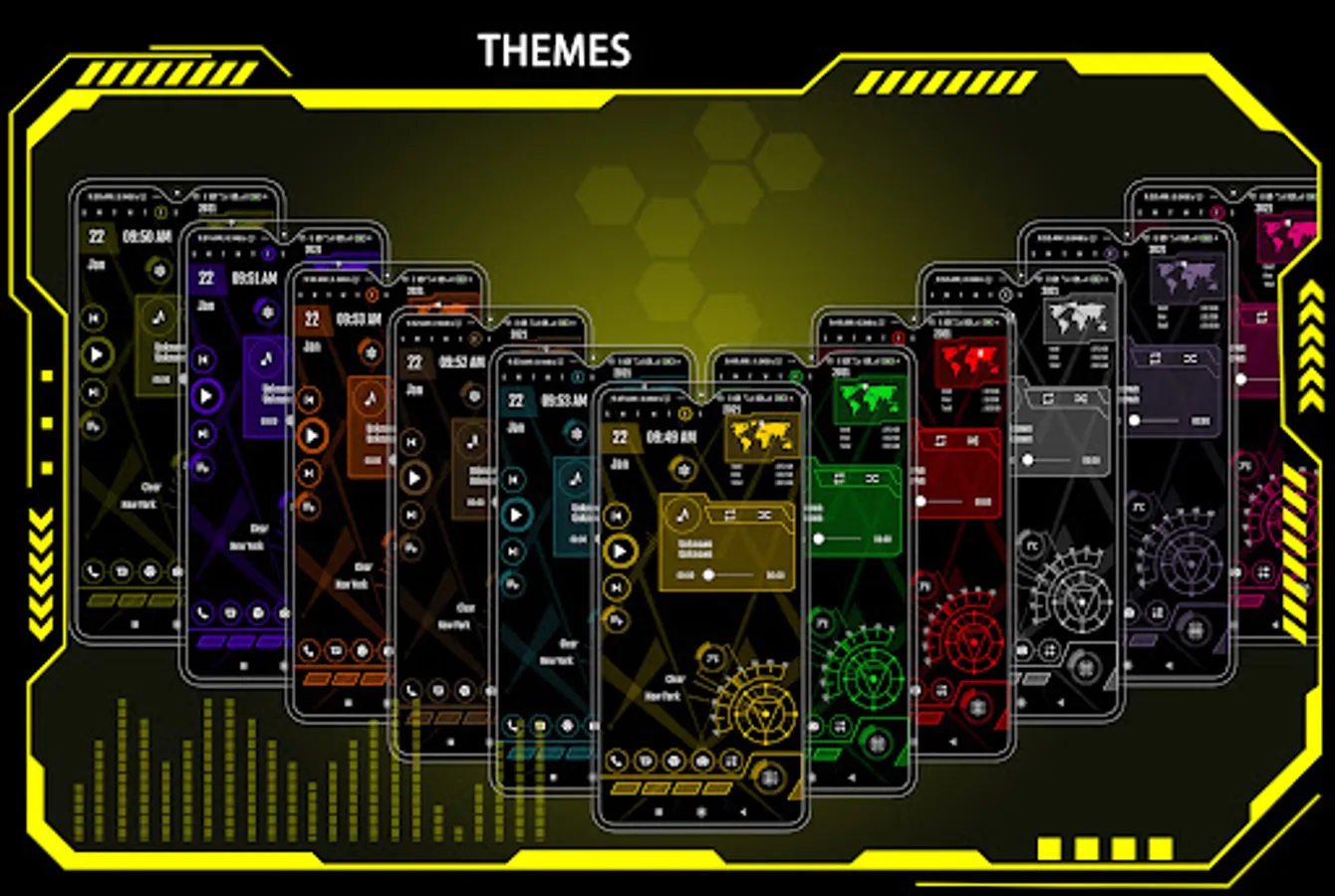 Immerse yourself in a world of color with millions of theme color options. Watch as your entire launcher transforms to exude a futuristic hitech vibe.