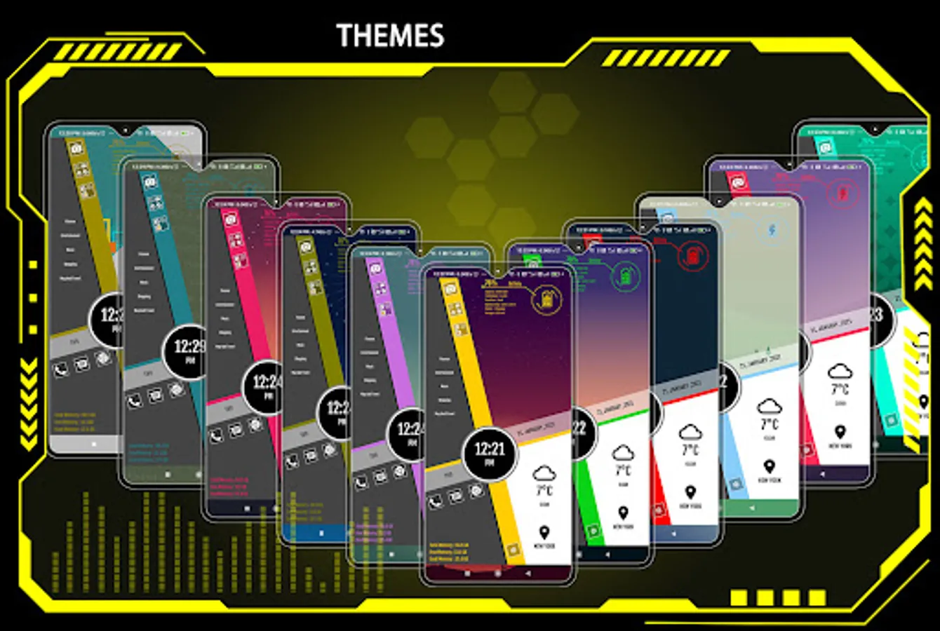 Dive into the world of dynamic hi-tech wallpapers that adapt to your chosen theme. Adjust color transparency to your preference and even use images from your personal gallery to personalize your home screen.