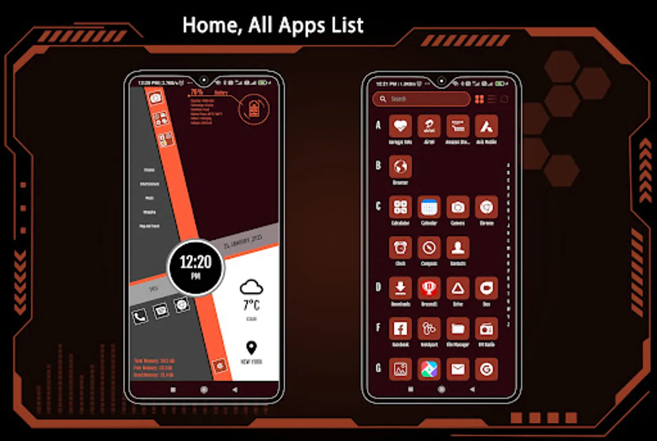 Immerse yourself in a world of color with millions of theme color options. Watch as your entire launcher transforms to exude a futuristic hitech vibe.