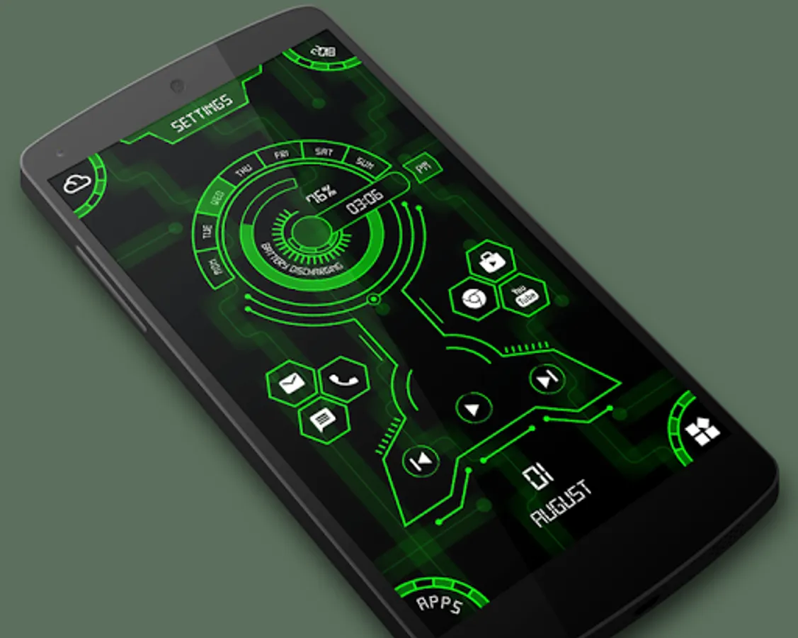 Dive into the world of dynamic hi-tech wallpapers that adapt to your chosen theme. Adjust color transparency to your preference and even use images from your personal gallery to personalize your home screen.