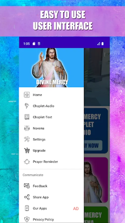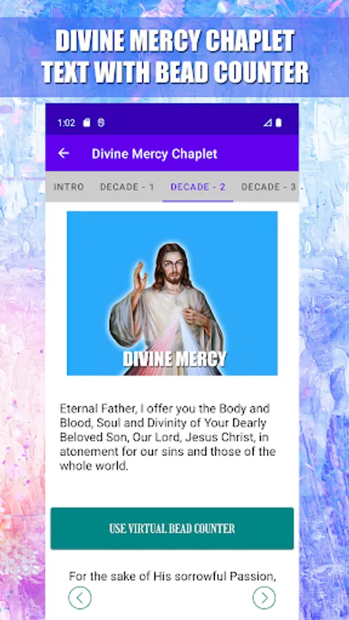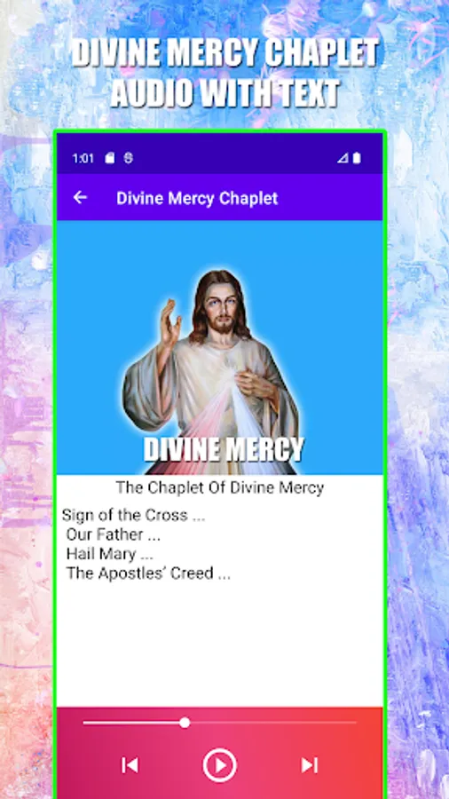 * Audio prayers are given with play, pause option for meditating on the merciful passion.