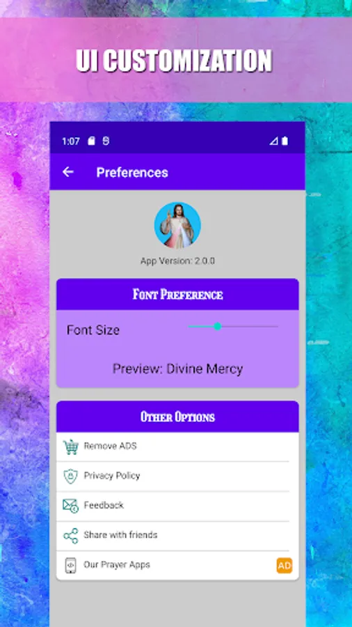 * Customizable font style for texts of the prayers