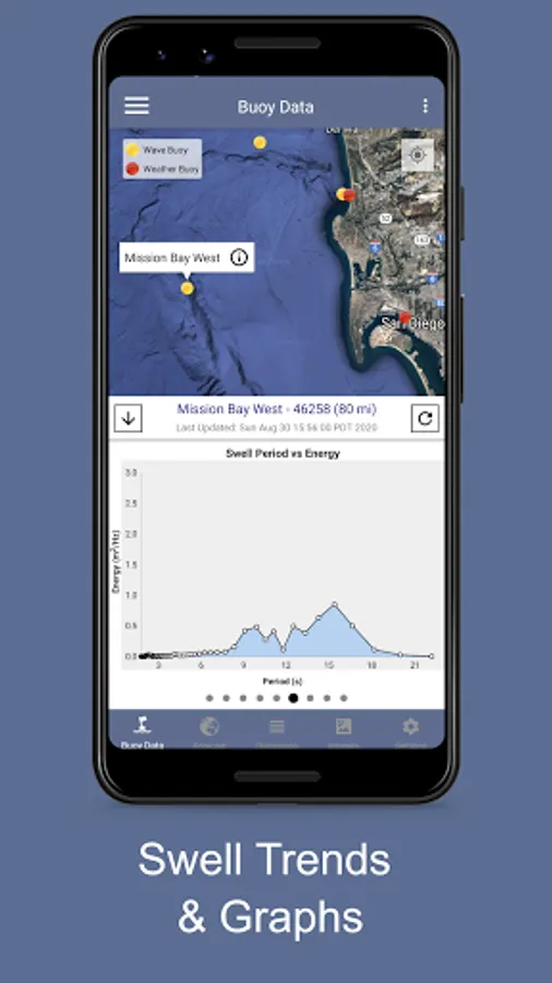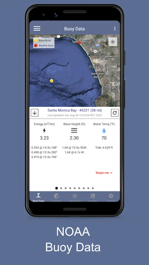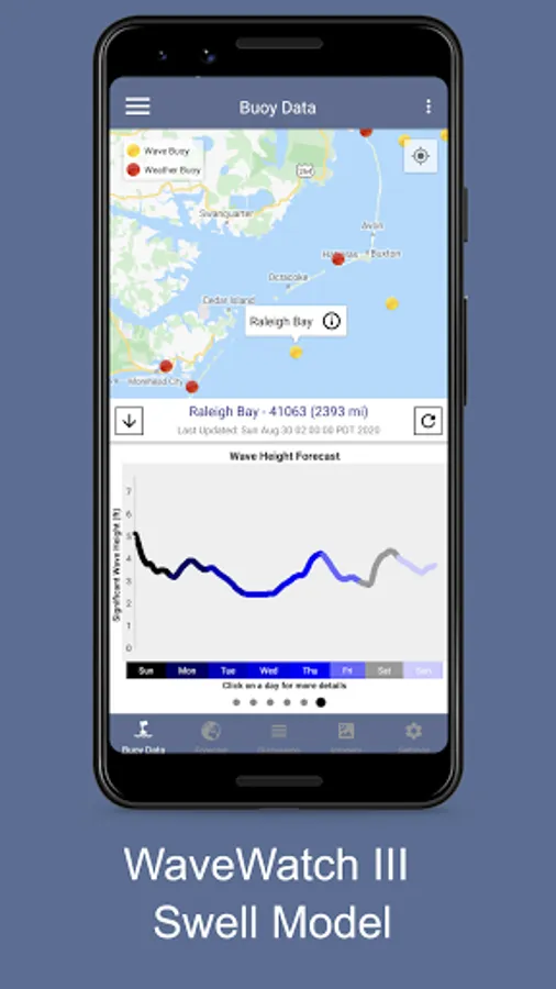 Please remember that this app can only show data the buoy collects. Not all buoys collect weather data. Not all buoys collect wave data.