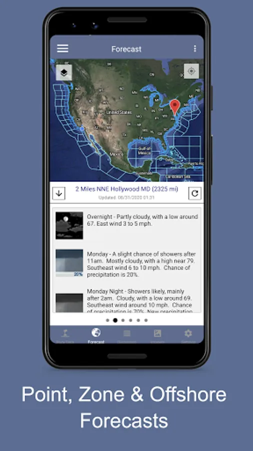 * 5-day National Weather Service marine weather forecast for point locations and weather zones and offshore zones
