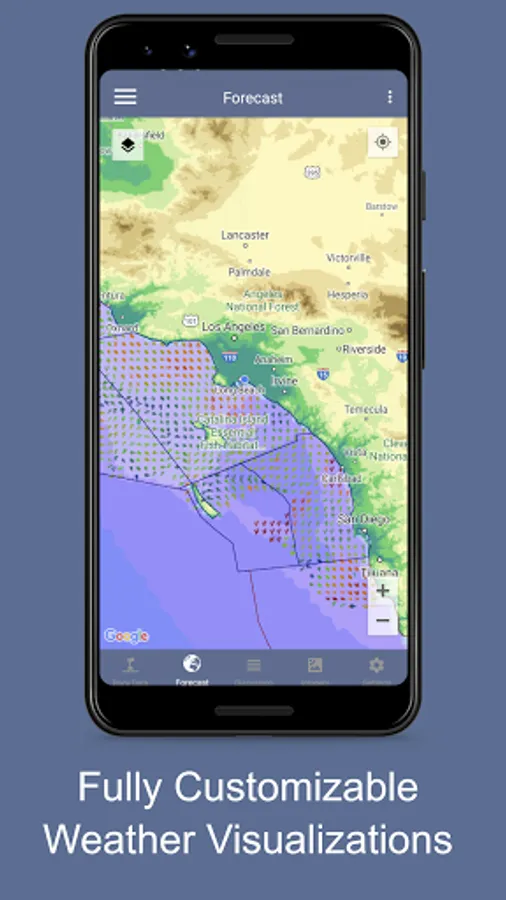 * Many additional map layers providing hazard areas, wave heights, temperatures, wind speeds and many others!