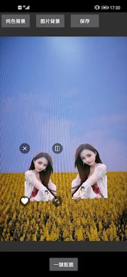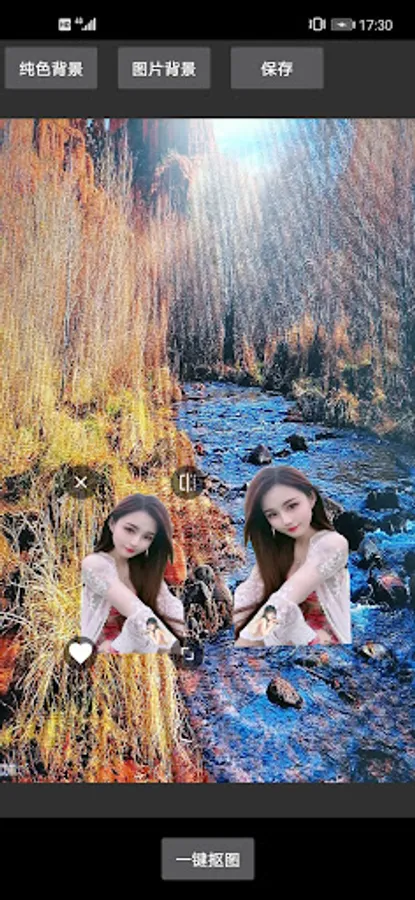 Users can choose a picture or a pure picture as the background and choose a picture with characters. One click matting is simple and convenient. You can select multiple pictures to matting, and the pictures can be rotated, enlarged and reduced
