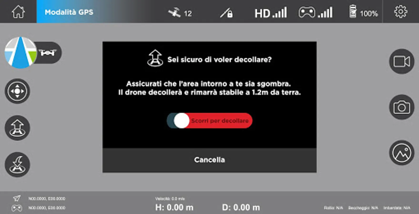 Control your TwoDots Drako drone through a dedicated smartphone app. Use the screen as an FPV function to directly see the aerial view of your drone's room. Pilot your Drako via the analog controls on the screen or use the gyros to control Drako simply by tilting your device. Thanks to GPS positioning it will be easier to take photos and record videos and then view them directly on the device.