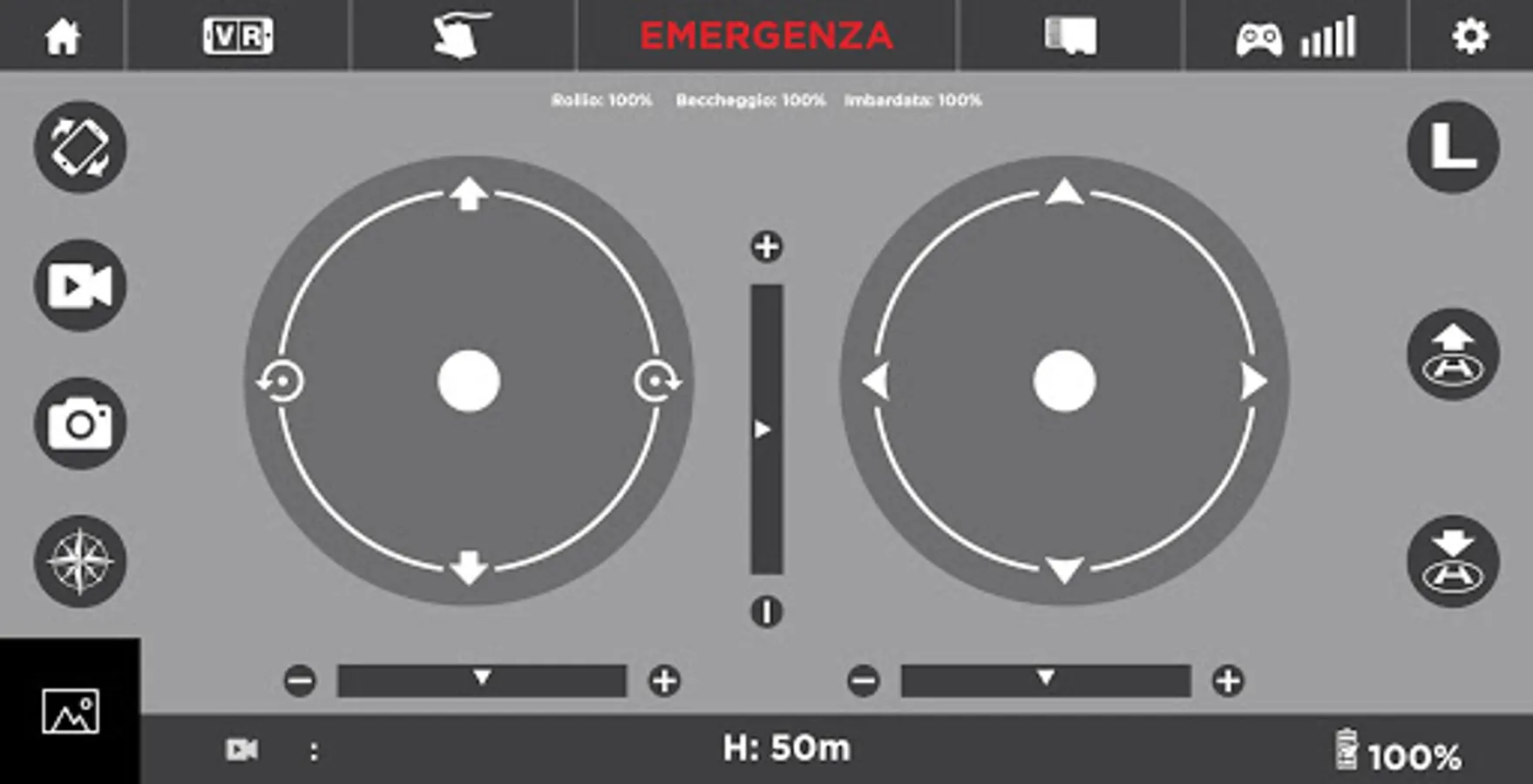 Control your TwoDots Syrio drone with a simple and intuitive dedicated App. Use the screen as an FPV function to directly see the aerial view of the drone or pilot your Syrio via the analog controls on the screen. You can also use the gyroscopes of your device to control Syrio simply by tilting your smartphone. Thanks to the optical flow Syrio will be even more stable in the air .. take photos and record video directly on smartphones and activate all the most advanced flight features available.
