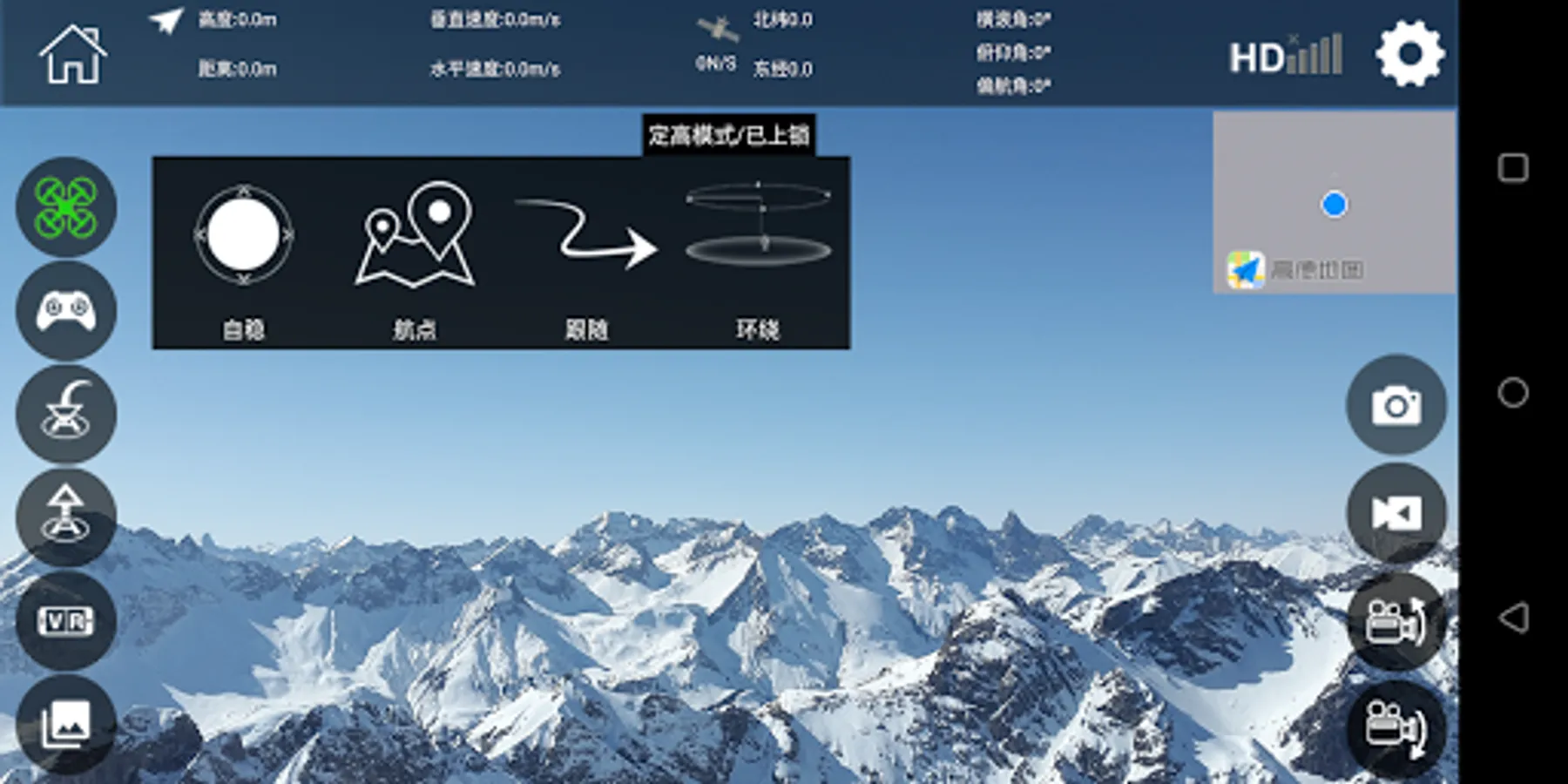 2.Display the real-time video which taken by the camera on the aircraft,video data transmitted via 2.4G WiFi protocol.