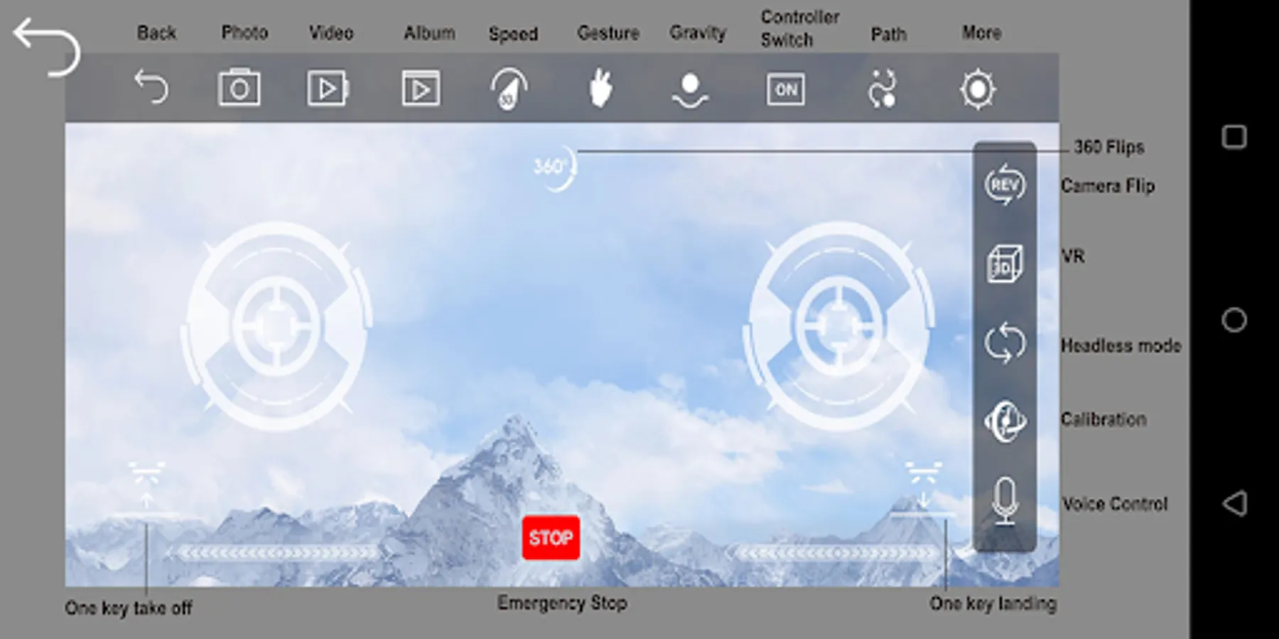 2.Display the real-time video which taken by the camera on the aircraft,video data transmitted via 2.4G WiFi protocol.