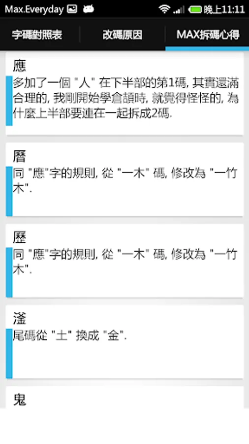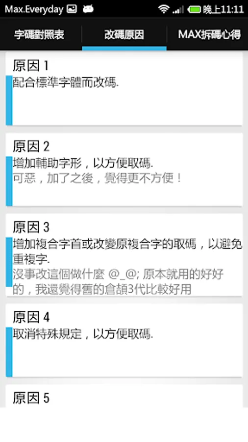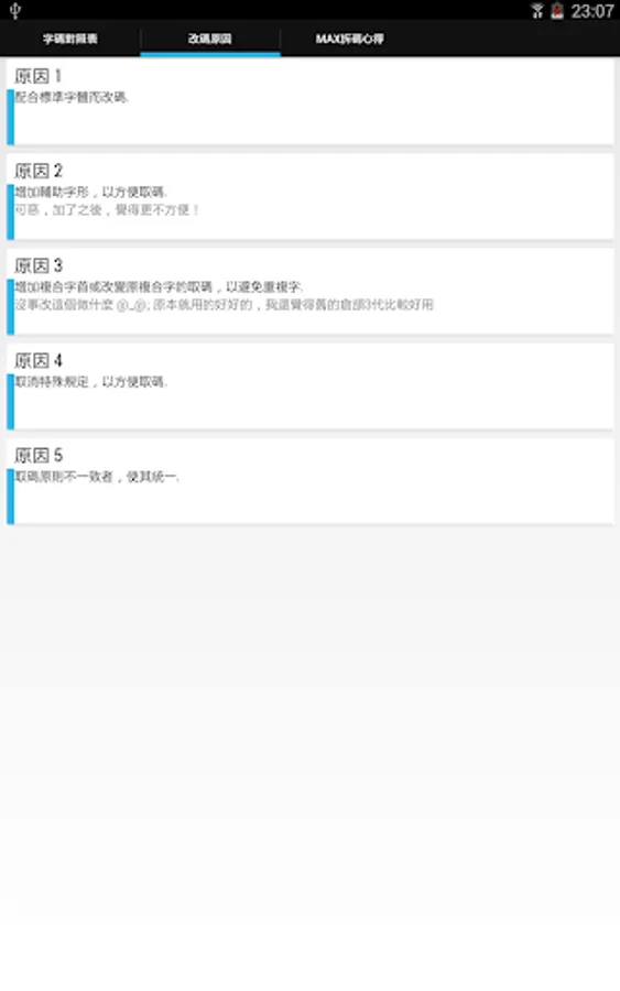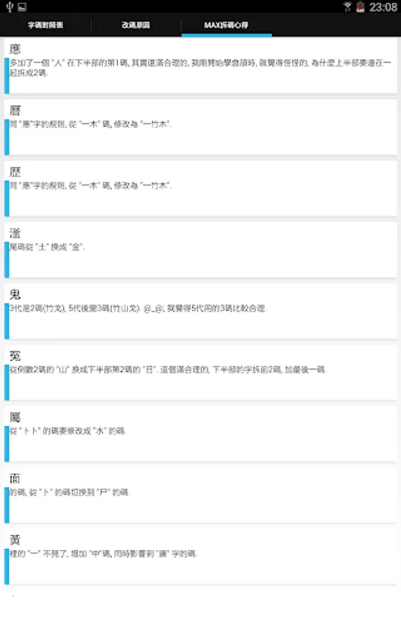 1. The input code of some words was changed from Cangjie 3 to Cangjie 5, we have a list and summary help you to remember the new code.