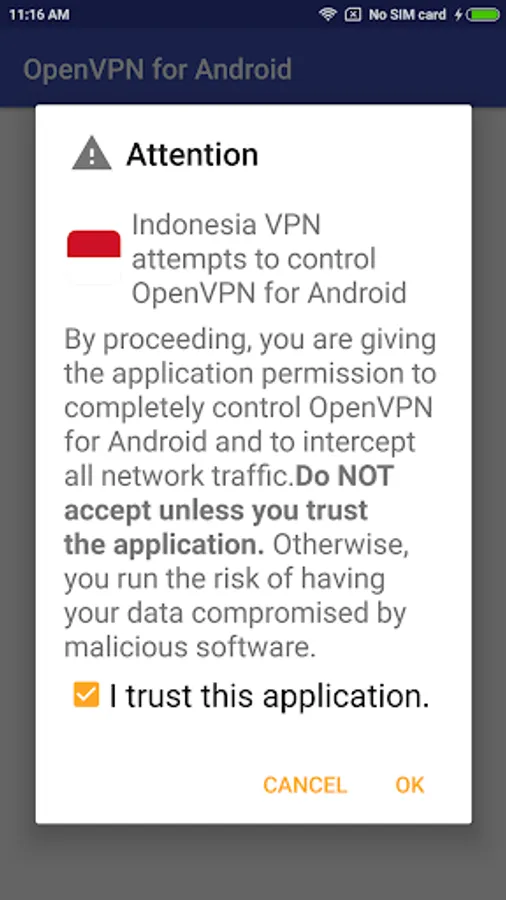 This app is a plug-in app, it can not work independently, this app is not developed by OpenVPN Technologies, Inc.