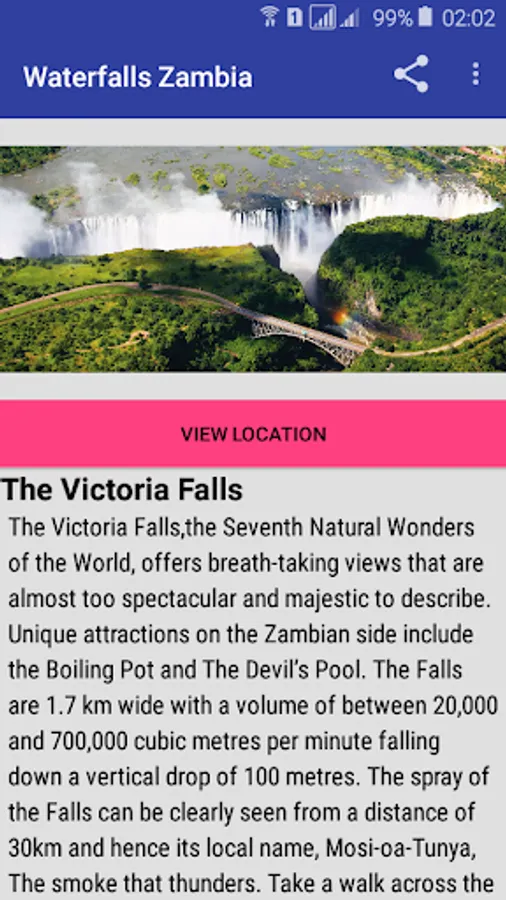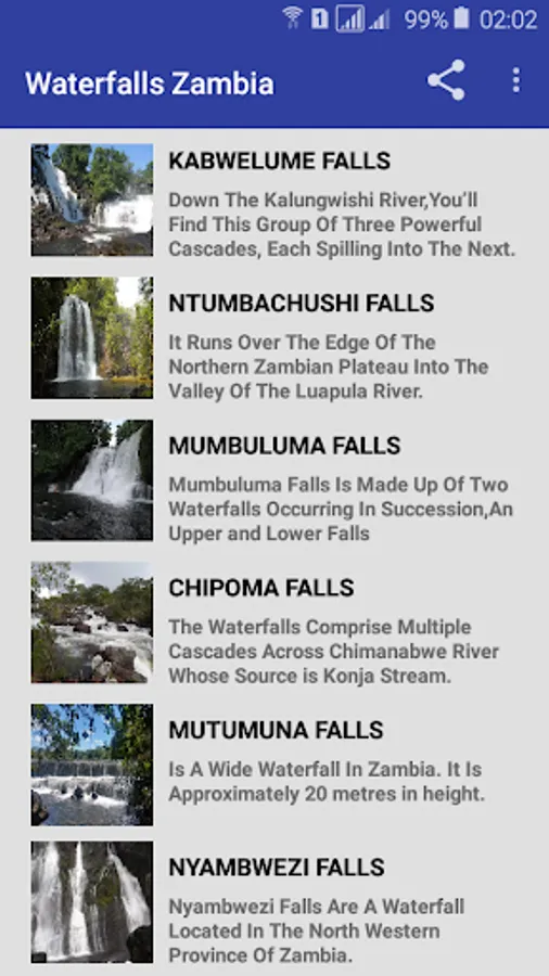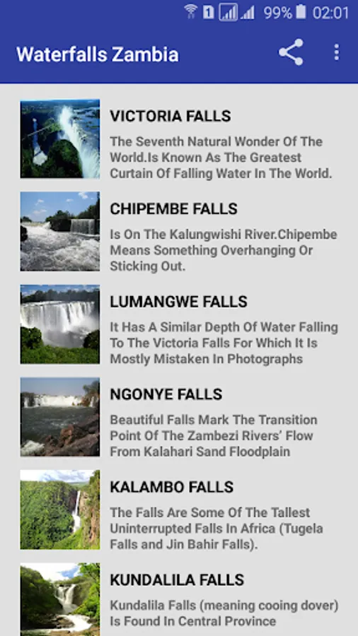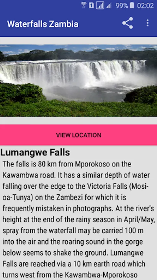 Waterfalls Zambia is an app that contains most beautiful and spectacular waterfalls in Zambia and Africa.